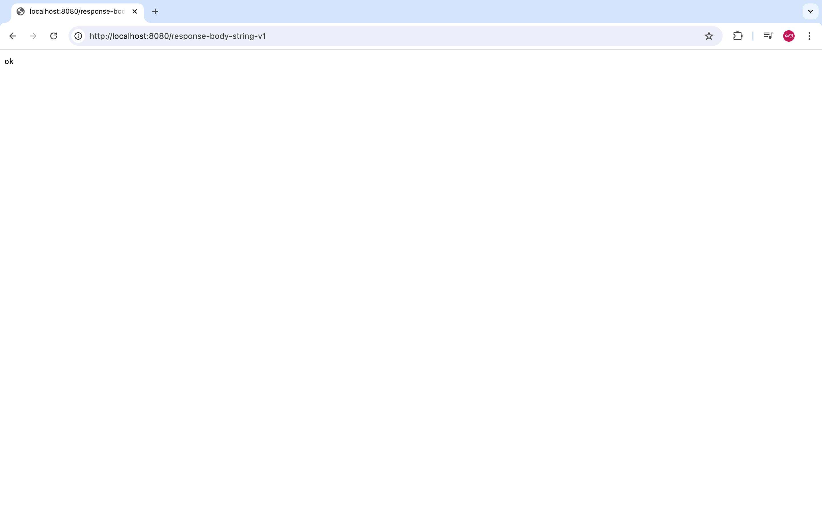 서블릿을 직접 다룰 때 처럼 response.getWriter().write("ok"); HttpServletResponse 객체를 통해서 HTTP 메시지 바디에 직접 `ok` 응답 메시지를 전달한다. 2) ResponseEntity를 사용해 문자열 응답을 전송하는 방법