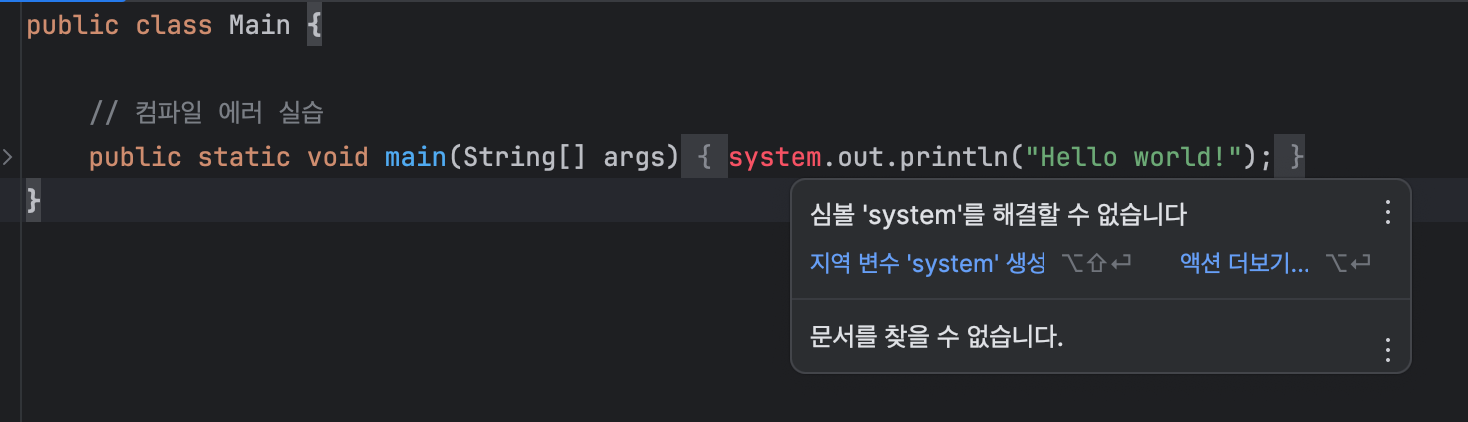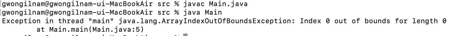 1) 컴파일 오류 예시 터미널에서 javac로 컴파일
