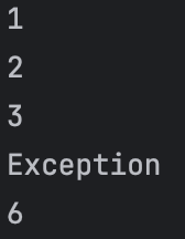 System.out.println(6); // 예외 처리 후 계속 실행
