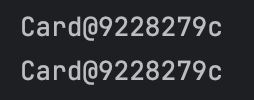 import java.util.Objects; class Card { String kind; int number; Card(String kind, int number) { this.kind = kind; this.number = number; } Card() { this("SPACE", 1); } // Object클래스의 toString()을 오버라이딩 public String toString() { return "kind : " + kind + ", number:" + number; } //equals()를 오버라이딩하면 hashCode()도 오버라이딩 해야한다. public int hashCode() { return Objects.hash(kind, number); // 가변인자라서 호출시 지정하는 값의 개수가 정해져있지 않다 } public boolean equals(Object obj) { if (!(obj instanceof Card)) return false; Card c = (Card) obj; return this.kind.equals(c.kind) && this.number == c.number; } } public class Ex9_4 { public static void main(String[] args) { Card c1 = new Card(); Card c2 = new Card(); System.out.println(c1.toString()); System.out.println(c2.toString()); System.out.println(c1.equals(c2)); System.out.println(c1.hashCode()); System.out.println(c2.hashCode()); //hashCode() 주석처리하면 다른 값나옴 } }