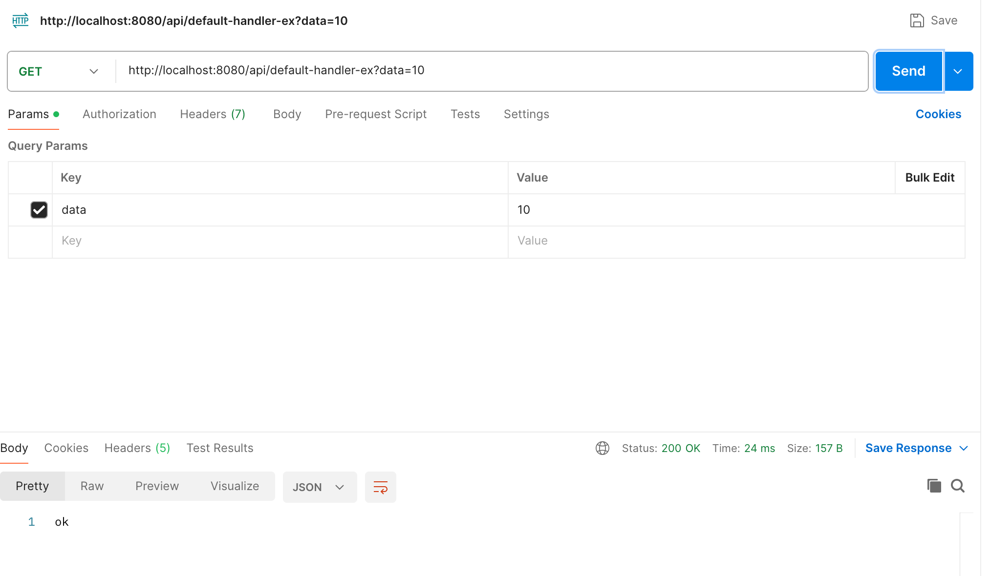 DefaultHandlerExceptionResolver` 는 스프링 내부에서 발생하는 스프링 예외를 해결한다. 대표적으로 파라미터 바인딩 시점에 타입이 맞지 않으면 내부에서 `TypeMismatchException` 이 발생하는데, 이 경우 예외가 발생했기 때문에 그냥 두면 서블릿 컨테이너까지 오류가 올라가고, 결과적으로 500 오류가 발생한다. 그런데 파라미터 바인딩은 대부분 클라이언트가 HTTP 요청 정보를 잘못 호출해서 발생하는 문제이다. HTTP 에서는이런 경우 HTTP 상태 코드 400을 사용하도록 되어 있다. `DefaultHandlerExceptionResolver` 는 이것을 500 오류가 아니라 HTTP 상태 코드 400 오류로 변경한다.