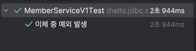 `memberA` 8000원 - 2000원 감소 `memberEx` 10000원 - 중간에 실패로 로직이 수행되지 않았다. 따라서 그대로 10000원으로 남아있게 된다. 결과적으로 `memberA` 의 돈만 2000원 감소 -> 현실에선 실패한 트랜잭션이다.