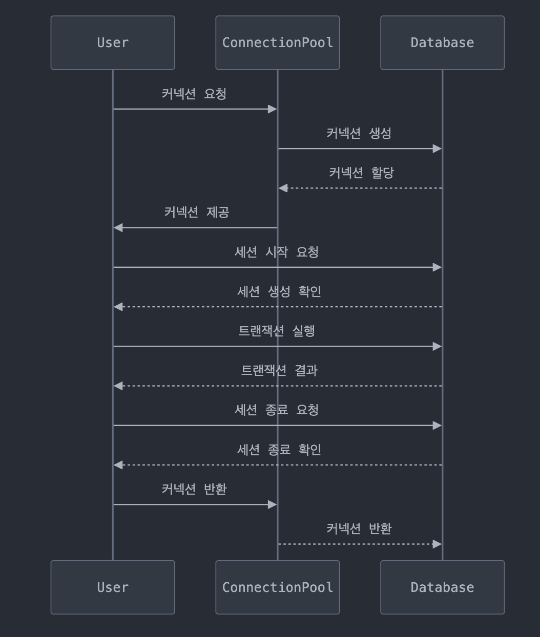트랜잭션을 유지하려면 트랜잭션의 시작부터 끝까지 같은 데이터베이스 커넥션을 유지해아한다. 결국 같은 커넥션을 동