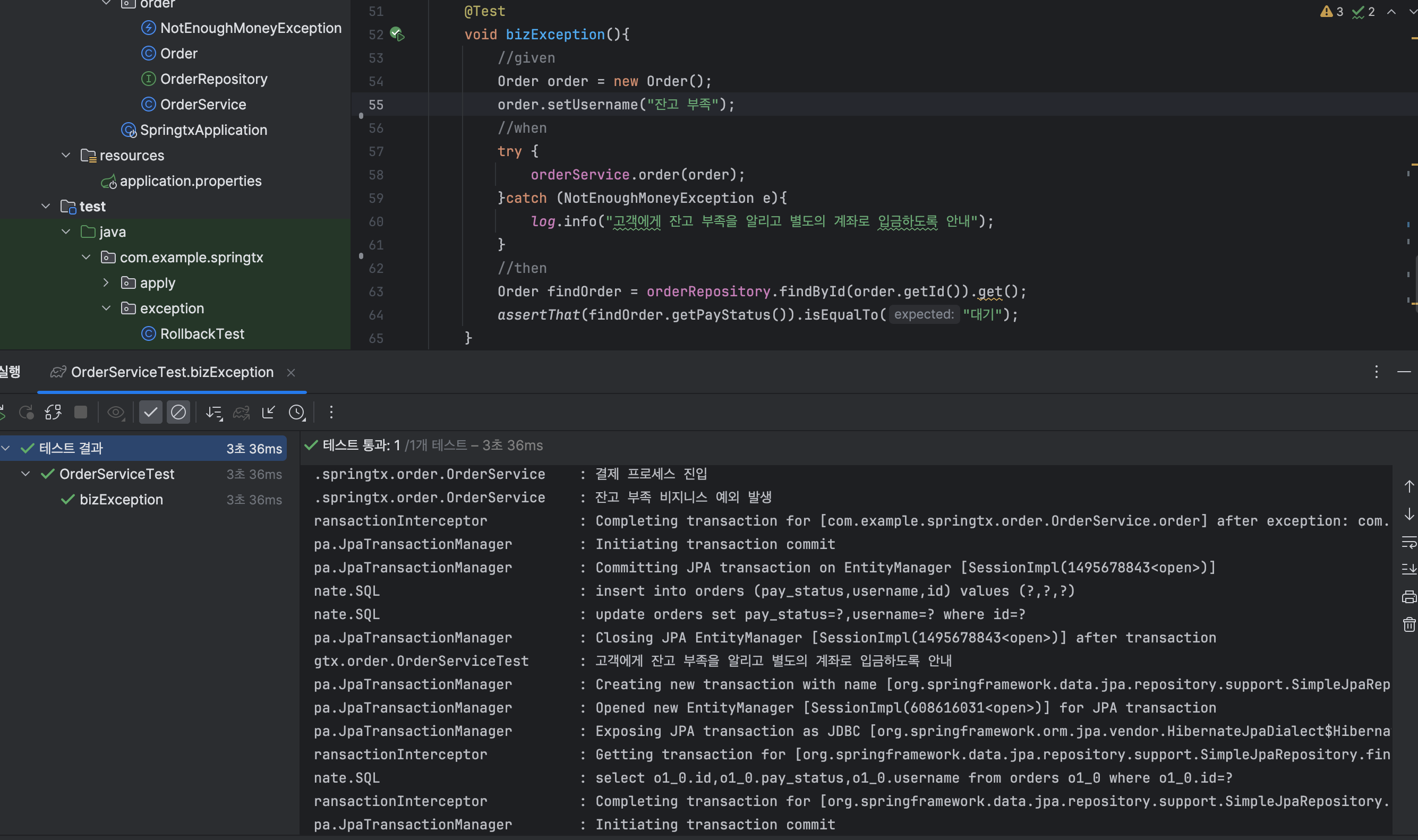 예외와 트랜잭션 커밋,롤백-활용 본문