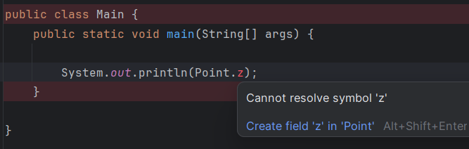 class Point3D { int x; int y; int z; } public class Main { public static void main(String[] args) { Point3D point3D = new Point3D(); point3D.x =3; point3D.y =7; point3D.z =5; System.out.printf("%d %d %d",point3D.x,point3D.y,point3D.z); }