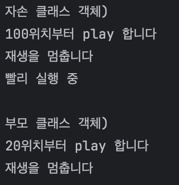 play(currentPos); // 선언부만을 통해 추상 메서드 호출 할 수 있다.
