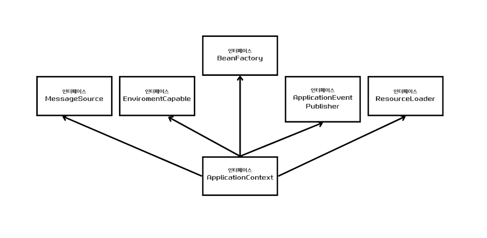 정리 ApplicationContext는 BeanFactory의 기능을 상속받는다. ApplicationContext는 빈 관리 기능 + 부가기능을 제공한다. BeanFactory를 직접 사용할 일은 거의 없다. 부가 기능이 포함된 ApplicationContext를 사용한다. BeanFactory나 ApplicationContext를 스프링 컨테이너라 한다.