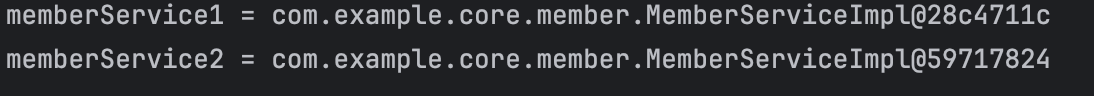 System.out.println("memberService1 = " + memberService1);