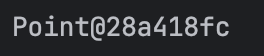 참고 `Point@28a418fc`는 Java의 `Object` 클래스에서 상속된 `toString` 메서드의 기본 출력 형식입니다. 이 메서드는 객체의 문자열 표현을 반환하는데, 기본적으로는 클래스 이름과 "@" 기호 뒤에 객체의 해시 코드를 16진수로 나타낸 문자열이 반환됩니다.