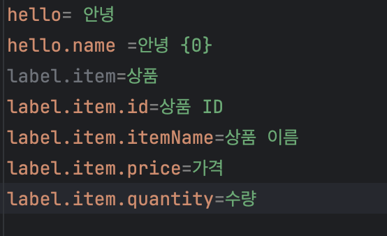 다음 메시지의 {0} 부분은 매개변수를 전달해서 치환할 수 있다. ` hello.name=안녕 {0} ->` Spring 단어를 매개변수로 전달 ->`안녕 Spring`
