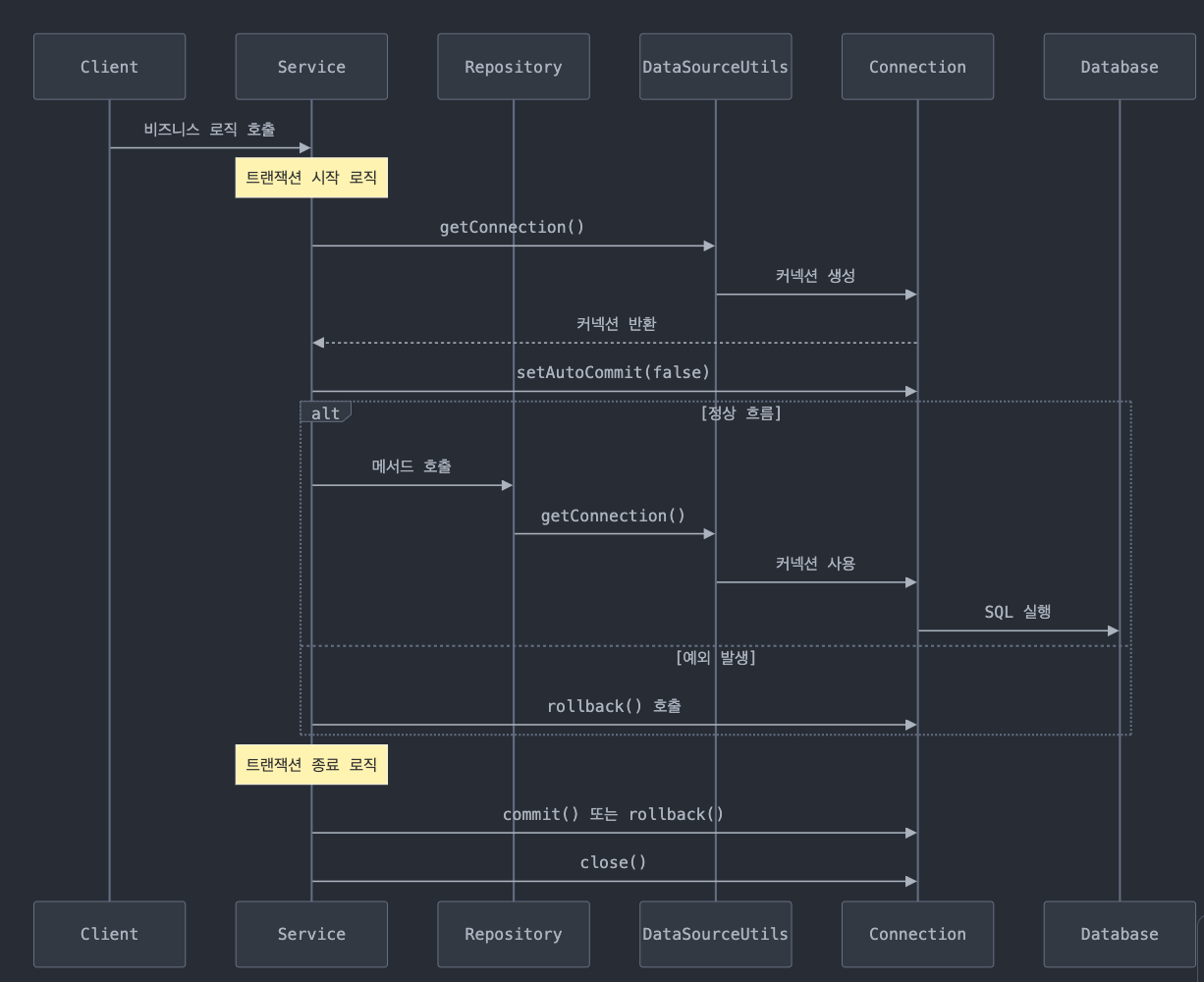 transactionManager.rollback(status); // 실패 시 롤백