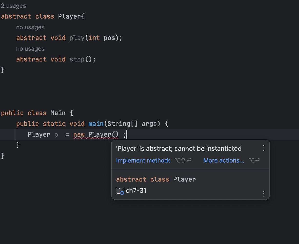 AbstractPlayer는 추상 클래스이기 때문에 인스턴스를 생성할 수 없음 */