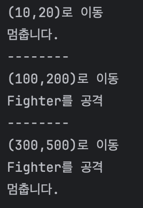 인터페이스는 구현부가 없어서 Unit과 Fightable의 선언부가 같아도 문제가 없다. 다중 상속 가능