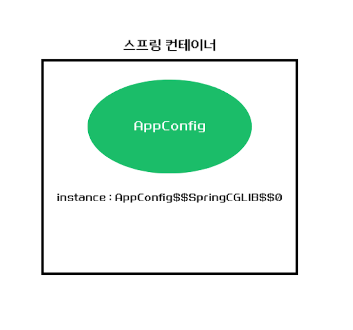 AppConfig$$SpringCGLIB$$0가 싱글톤을 보장해준다. AppConfig$$SpringCGLIB$$0예상코드(실제로는 CGLIB 내부 기술을 사용하는데 매우 복잡함)