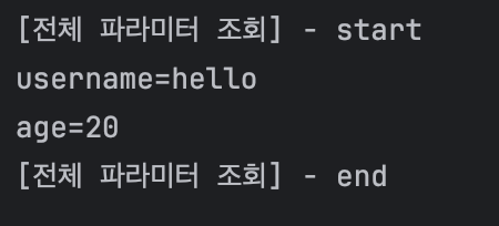 복수 파라미터에서 단일 파라미터 조회 `username=hello&username=kim` 과 같이 파라미터 이름은 하나인데, 값이 중복이면 어떻게 될까? `request.getParameter()` 는 하나의 파라미터 이름에 대해서 단 하나의 값만 있을 때 사용해야 한다. 지금처럼 중 복일 때는 `request.getParameterValues()` 를 사용해야 한다. 참고로 이렇게 중복일 때 `request.getParameter()` 를 사용하면 `request.getParameterValues()` 의 첫 번째 값을 반환한다.